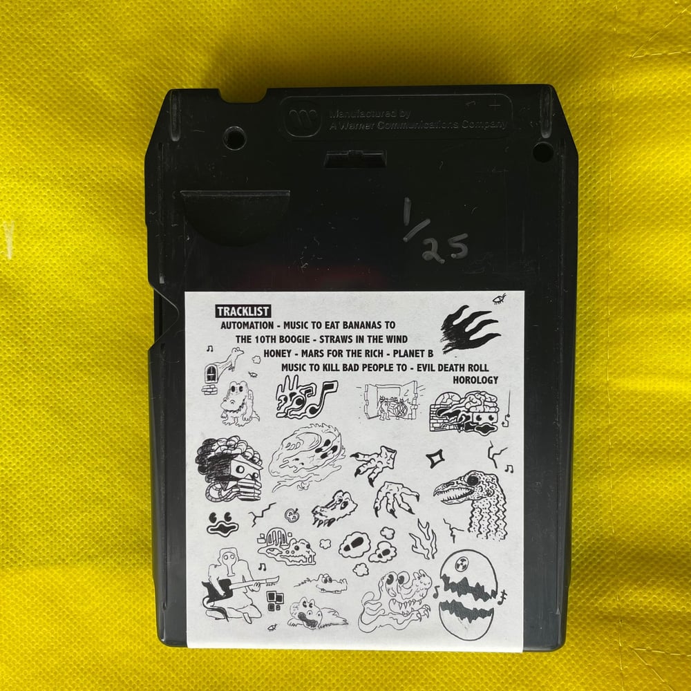 Only 25 hand numbered 8-tracks were made. Only 11 going up for sale here! Comes with custom printed slipcase with artwork by the incredible Josh Davis, plus a sticker. Each one of these 8-tracks were reconditioned 1x1 by hand from old 8-track cartridges: cartridge was taken apart, soaked to remove the old label, tape cut to size, and then recorded at 1X speed on professional grade machines for optimal audio quality.